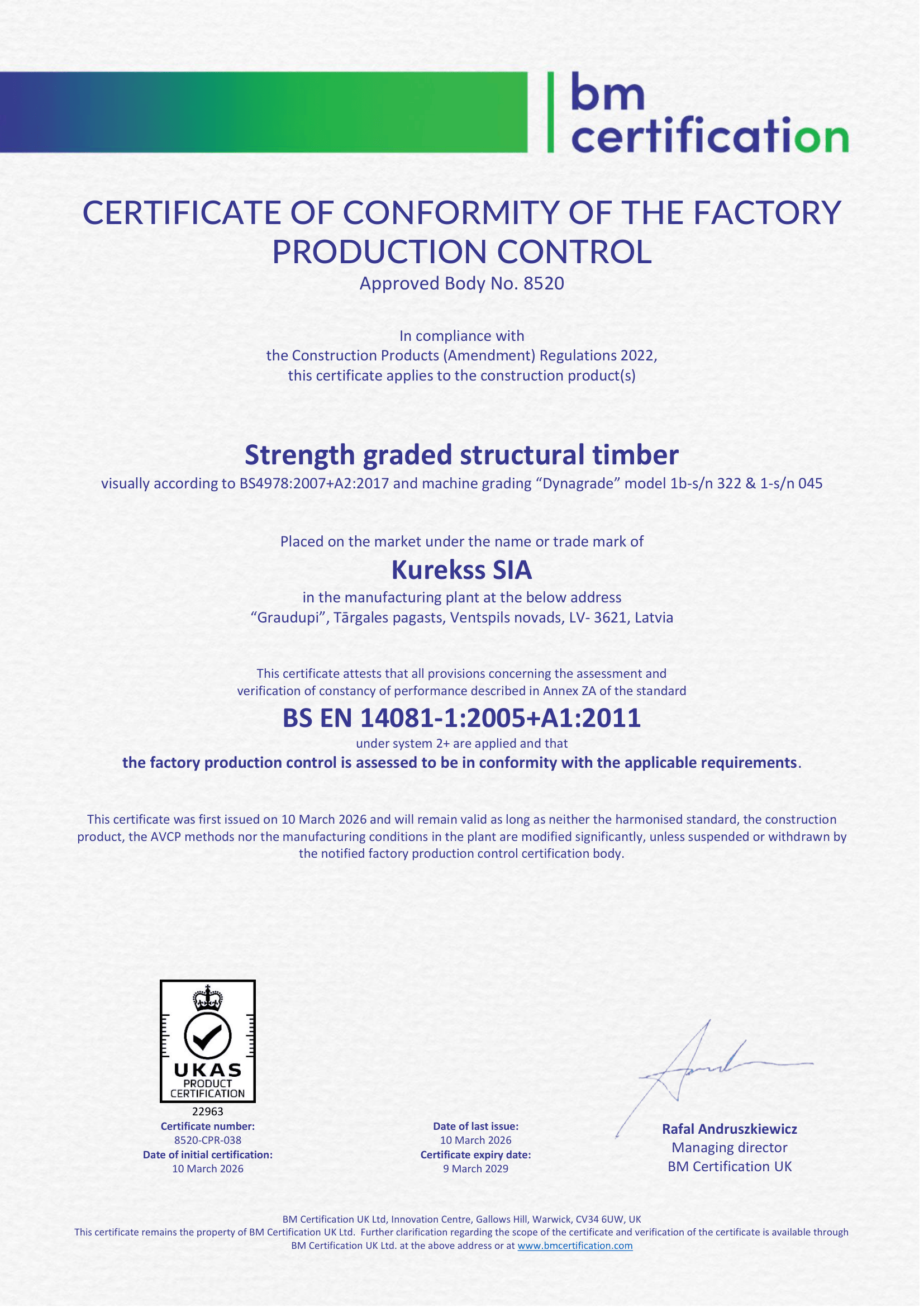 UKCA Construction timber certificate