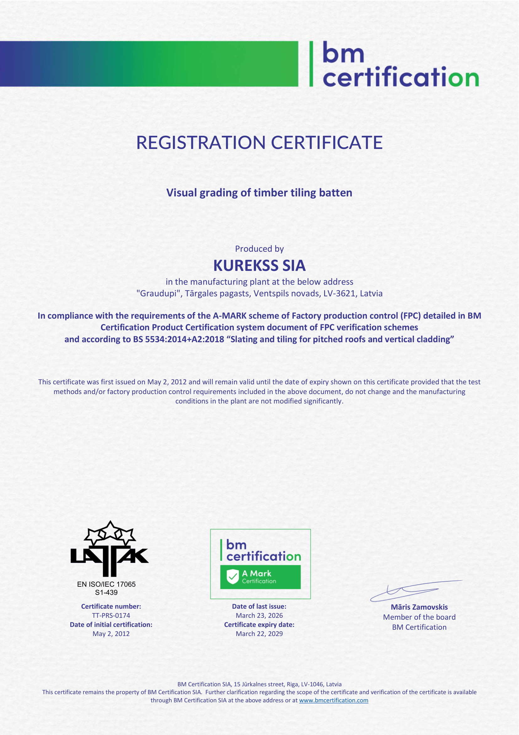 BS 5534 batten certificate